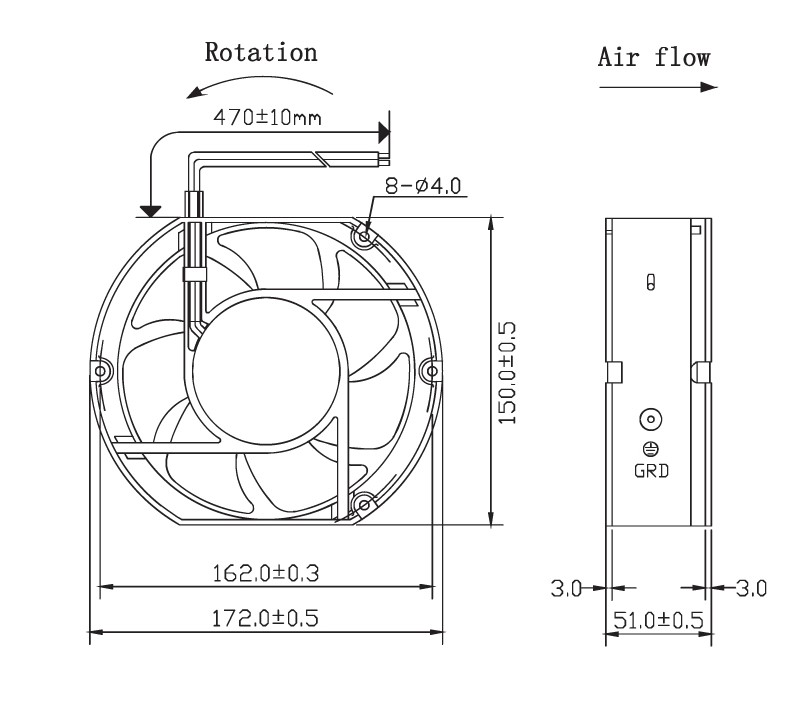 UF-DA1751B12H | 12V | Rulmanlı | 172x150x51mm