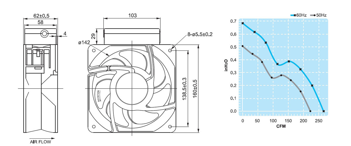 UF16FC23-BTH | 230V AC | Rulmanlı | 160x160x62