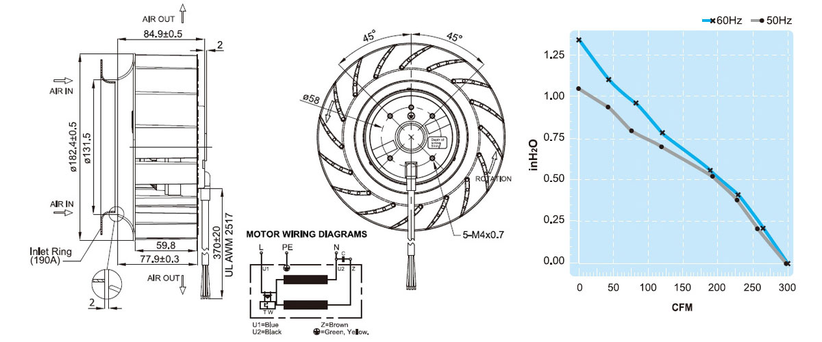 UF180APA23H1C2A-BWH | 230V AC | Rulmanlı | 182,4x84,9mm