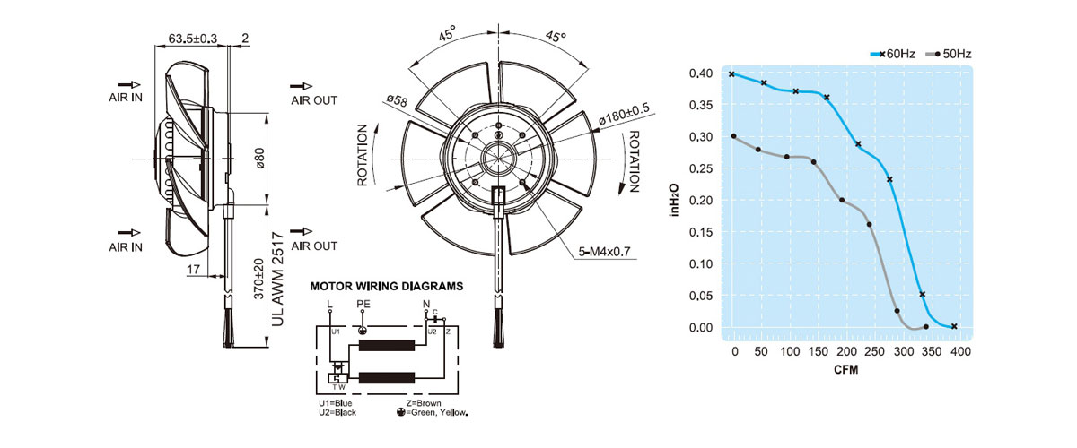 UF180BAB23-BWH | 230V AC | Rulmanlı | 180x63,5mm