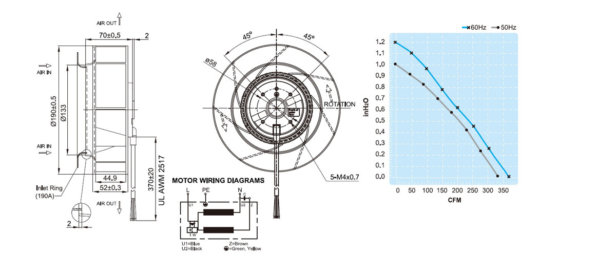 UF190APA23H1C2A-BWH | 230V AC | Rulmanlı | 190x70mm