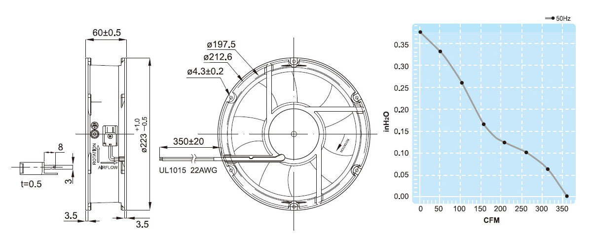 UF22F23-BTH | 230V AC | Rulmanlı | 223x60mm