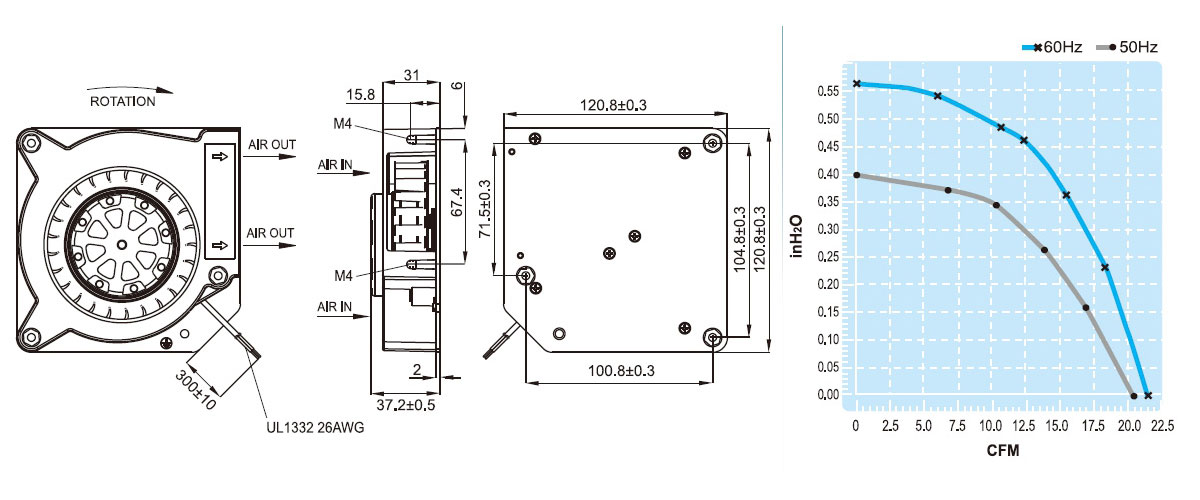 UF90DPB23-BWH | 230V AC | Rulmanlı | 120,8x120,8x37,2mm