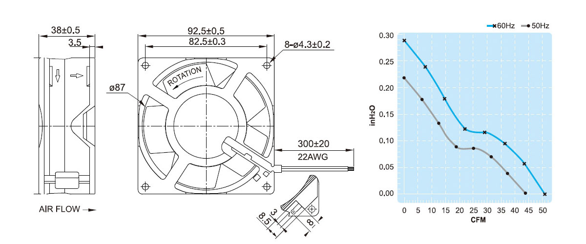 UF92AM23-BTH | 230V AC | Rulmanlı | 92x92x38mm