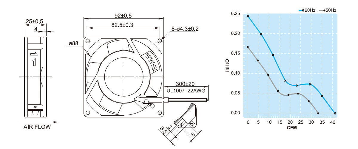 UF92B23-BTH | 230V AC | Rulmanlı | 92x92x25mm